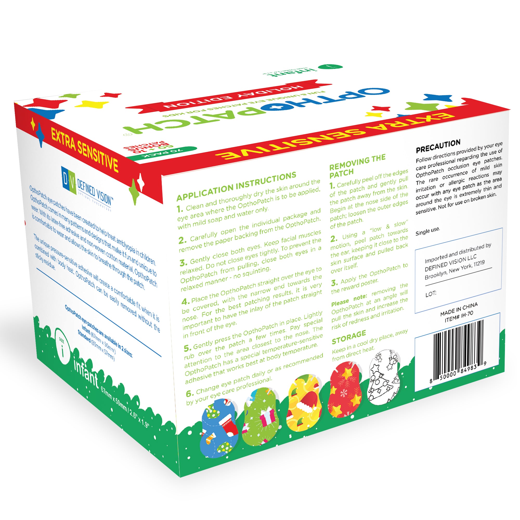 Opthopatch Holiday Edition Patches | Extra Sensitive Adhesive Eye Patches for Infants [70 count] + 2 Reward Chart Posters